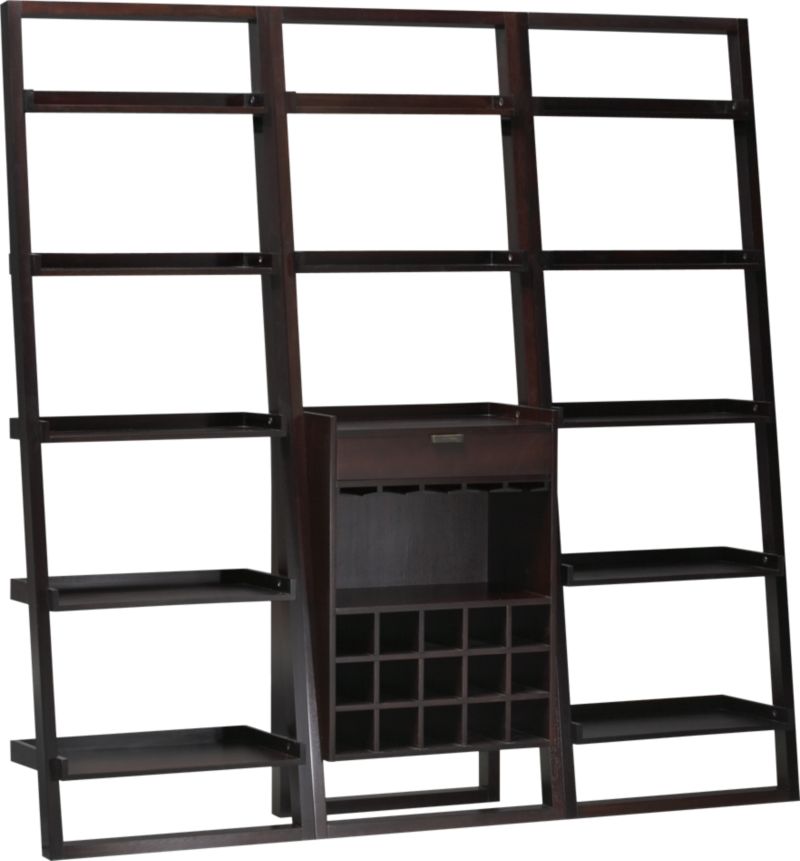 I found the bookshelves and wine storage solution - all in one piece!  This piece is from Crate and Barrel and is the perfect solution for our dual storage needs.  I know there are comparable shelving pieces out there, like this one from JCPenney, that are way cheaper, but none of them have the bonus wine storage of this one.  Having all of our wine bottles and accessories in one place will move clutter from the kitchen to this more organized space.